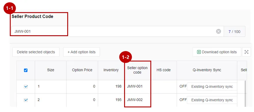 If you're registering and mapping a large number of products, it's helpful to include your "SKU Seller Management Code" when uploading to Excel.