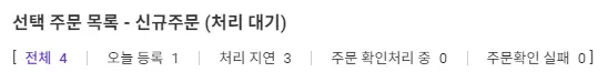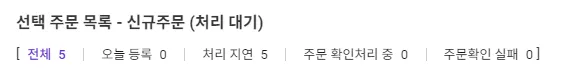 처리 지연: 주문 조회일 기준으로 하루 이상 지난 미처리 주문입니다. 취소를 방지하기 위해 빠르게 처리해주세요.