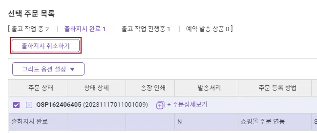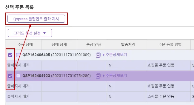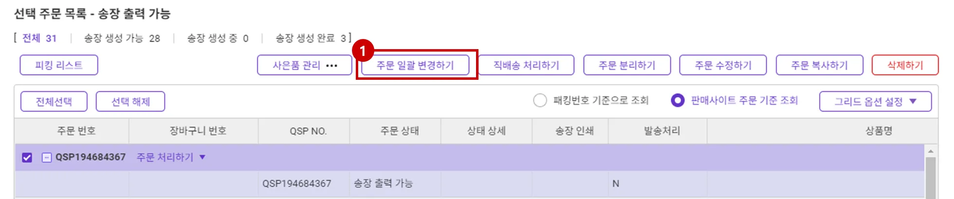 QSP 패킹번호 기준 조회 : 배송 주문 단위 별로 제공하며 배송 정보를 파악하기 좋은 그리드 타입