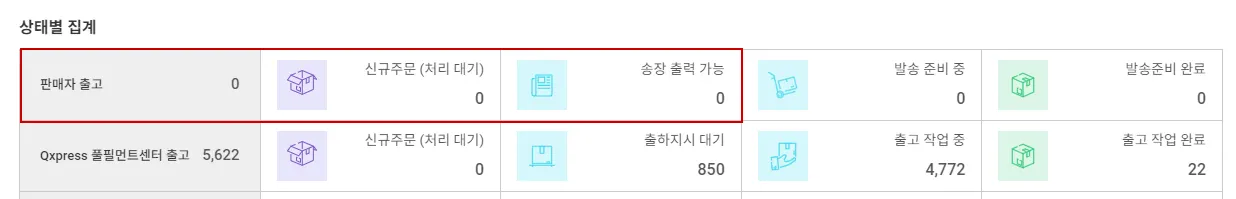 송장 출력 완료 : 송장은 출력되었으나 픽업은 신청하지 않은 상태입니다. QX 창고로 상품을 편리하게 보내고 싶으시면 픽업을 신청해주세요.
