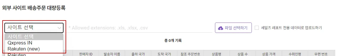 주문 등록 방법에 대해서는 각 사이트별 연동 가이드를 확인해주세요.
