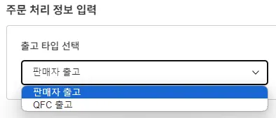TXFC 출고 주문( 풀필먼트 ) 을 생성하고 싶으신 경우, 출고 타입을 ‘TXFC 출고’로 설정합니다.