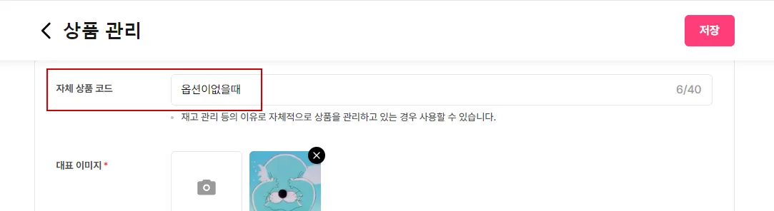 オプションのない単一商品の場合は、「独自商品コード」を入力します。