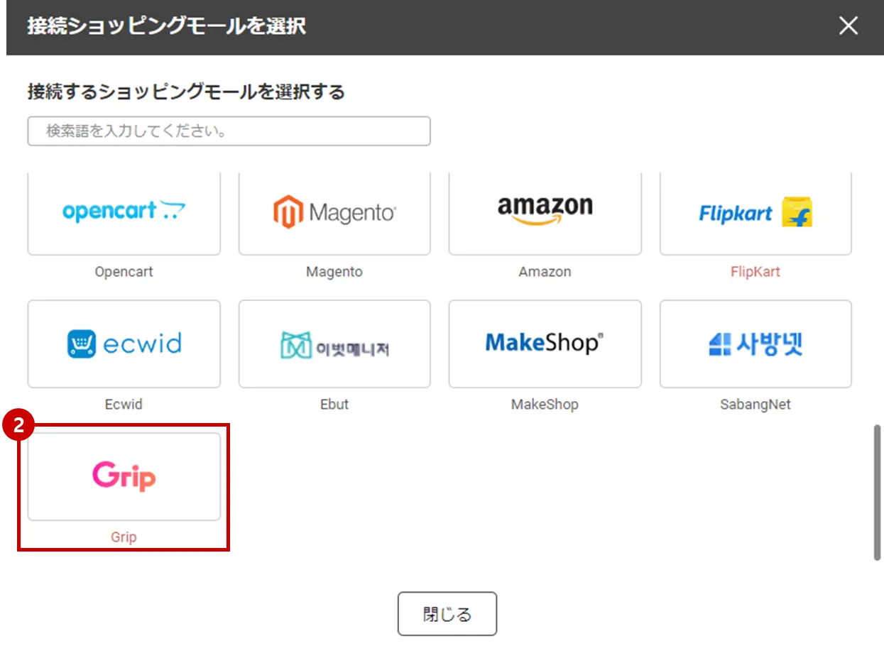 “Grip”を選択した後、下段の"ショッピングモール連動登録"へスクロールを移動してください。