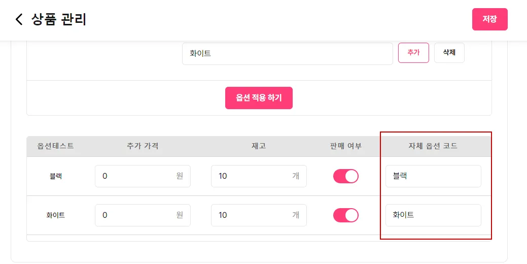 'オプション管理' タブで、「販売者定義コード」を入力してください。
