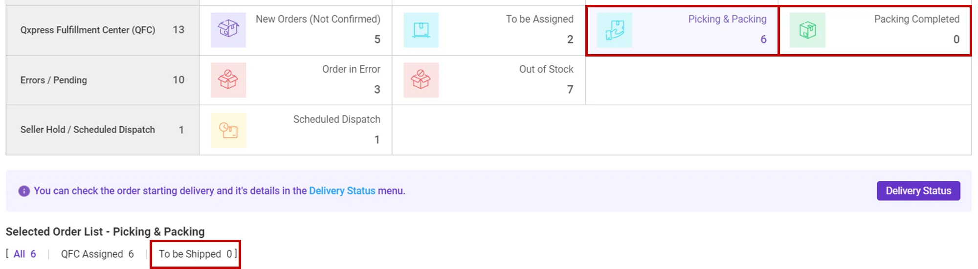 <Order Management> - 'Picking & Packing' and 'Packing Completed'