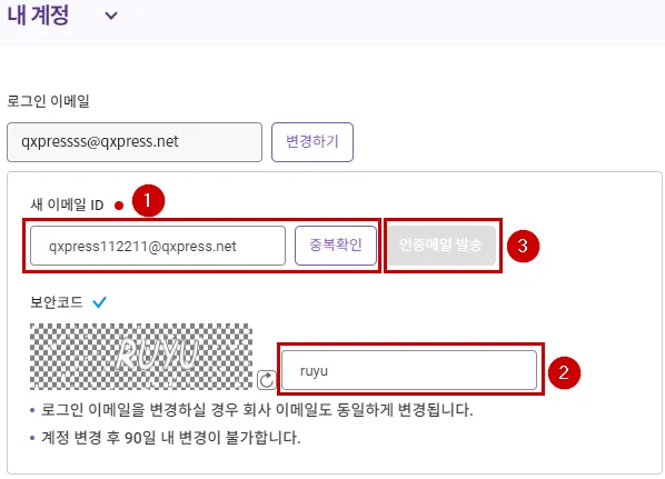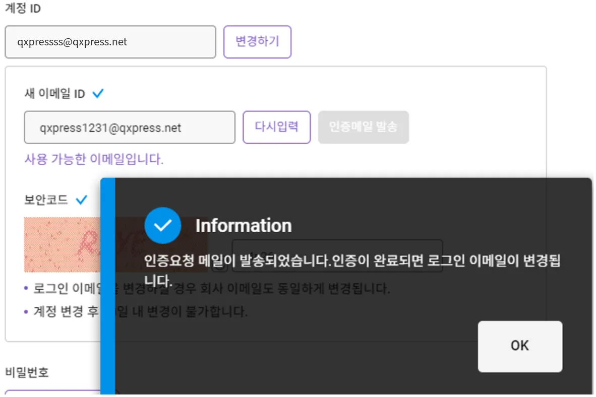 3. Qxpress 안내, 광고, 문의사항 등의 이메일은 변경한 이메일 ID와 동일한 이메일 주소로 발신됩니다.