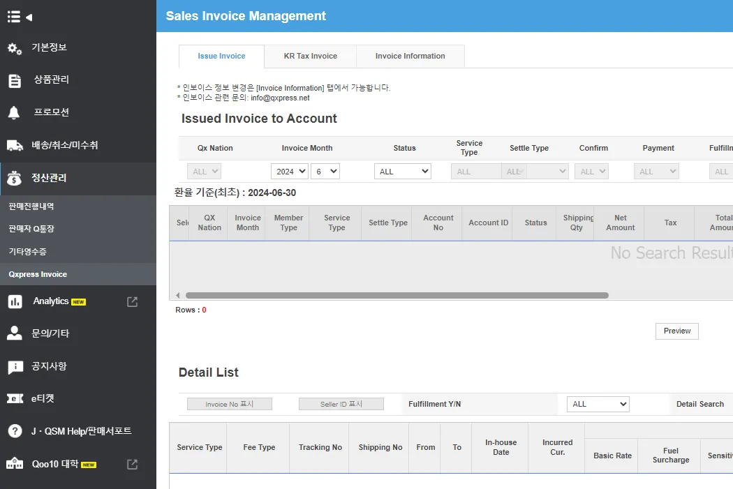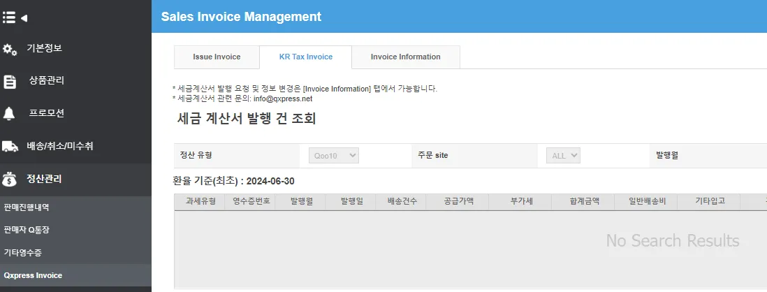 [JQSM 로그인]> [정산관리] > [Qxpress Invoice] > [KR tax invoices]
