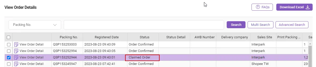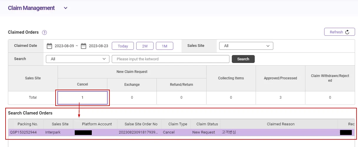 If cancel request is received, the order status is changed to ‘Claimed Order’ in the order mgt page.