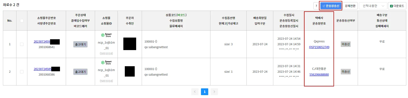 Path: Sabangnet> Shopping mall management> Sending a shopping mall waybill