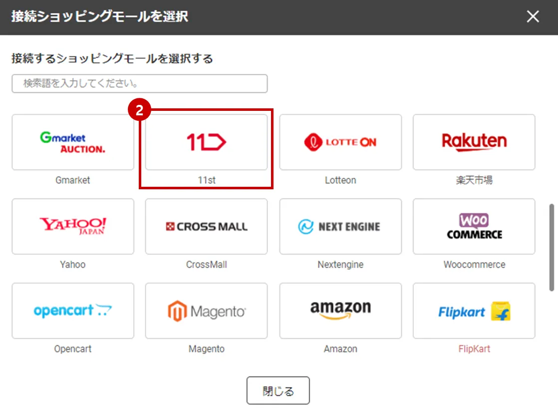 “11st Street”を選択した後、下段の"ショッピングモール連動登録"へスクロールを移動してください。