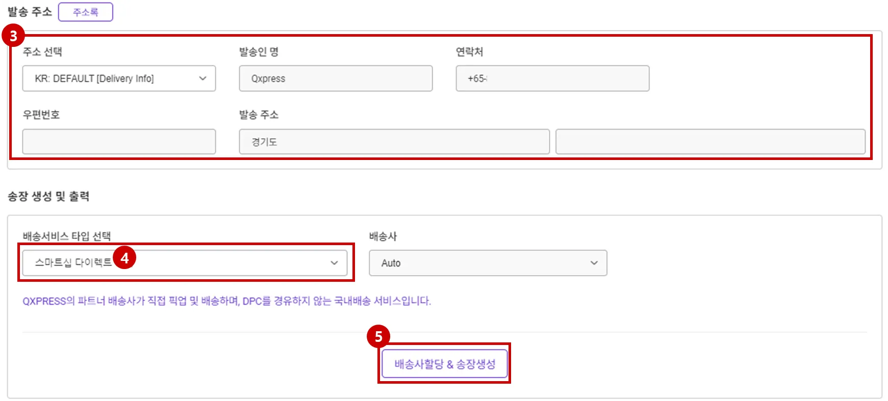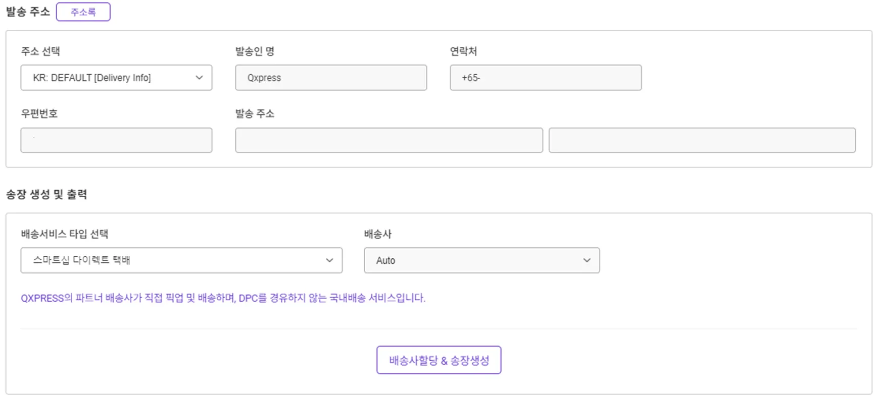 (Tracx Logis가 기본 배송사로 할당되며, 기존 QSP 번호가 송장번호로 지정됩니다.)