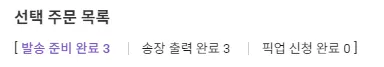 발송 준비 완료 주문은 아래와 같이 세부 상태로 구분됩니다.