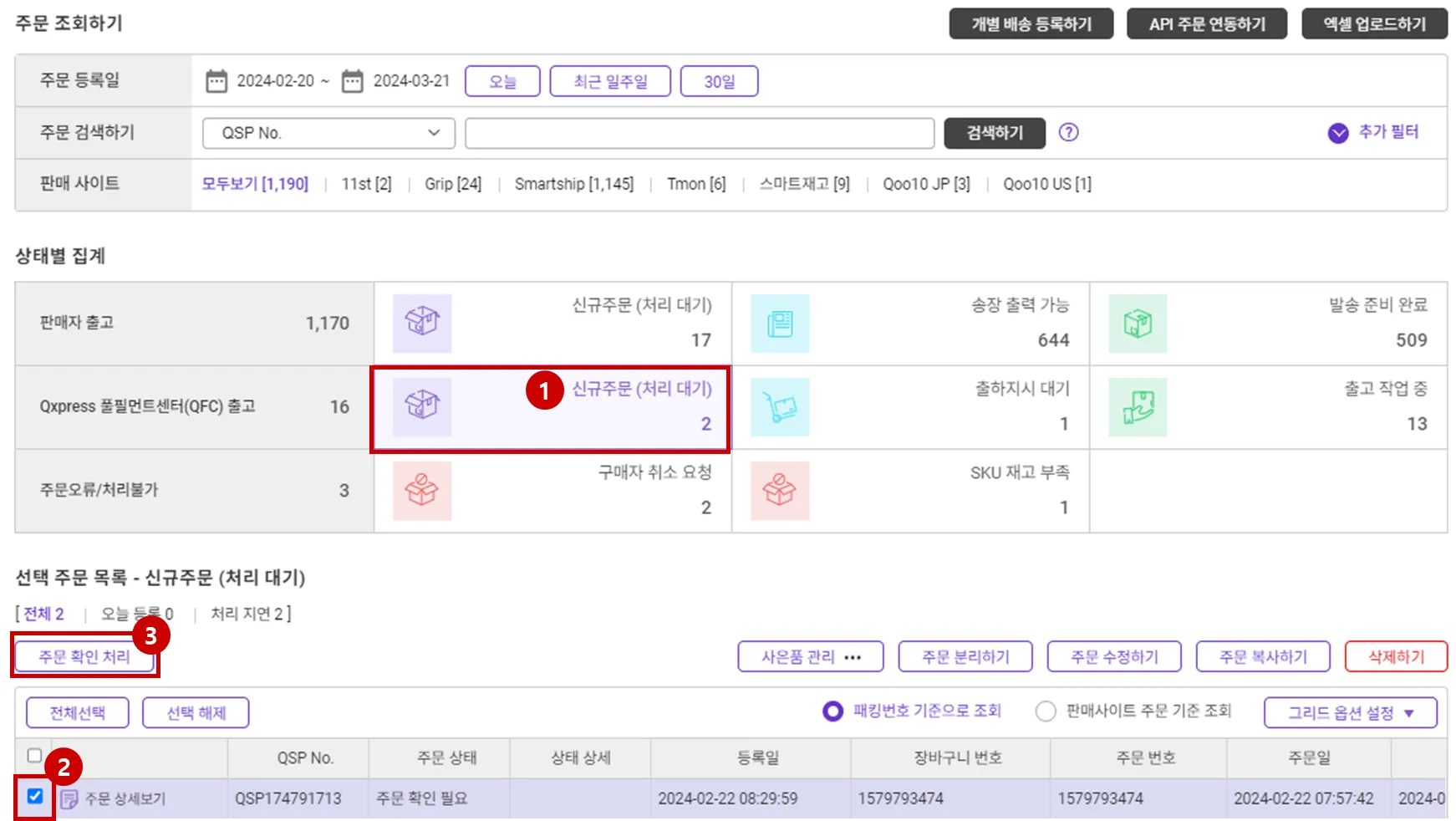 판매자 출고 주문 처리 방법 (주문 확인)