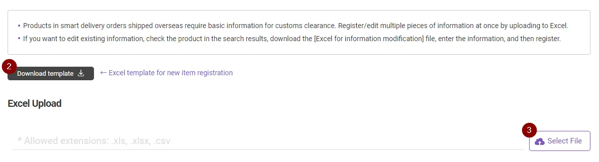 Your Item will be created upon order creating via Smartship UI (one by one registering) Excel and Sales site channel API. If your goods to be shipped out on international deliveries, then you may fill up additional fields. OR you can register your item information in advance using Excel.