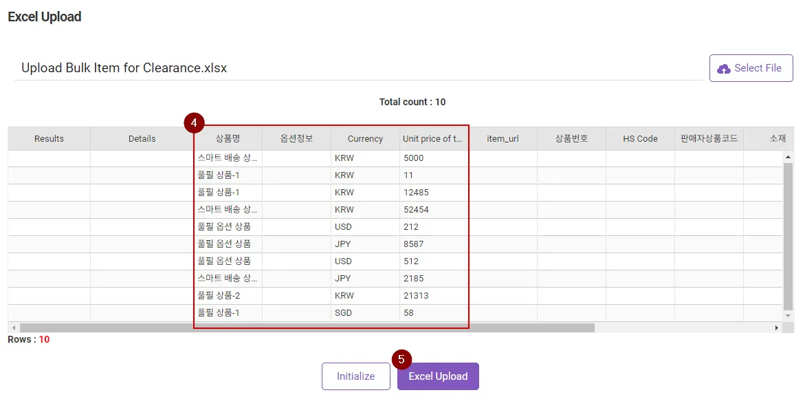 Item Name & Option : If you want to submit your item information before delivery order creation, then use the same (exactly same) item name and option name that you are using on your sales site or Excel. Otherwise, Smartship will create new items for you upon the order creation.