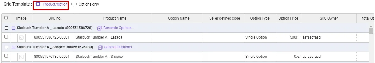 2. Option only : Only option products of the main product are displayed.(Exclude main products)