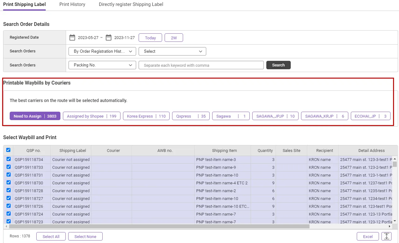 The “Directly register Shipping Label” function has been added, allowing sellers to directly register the shipping company and invoice number they use. The information you entered will be reflected in the shopping mall order shipping information and processed.