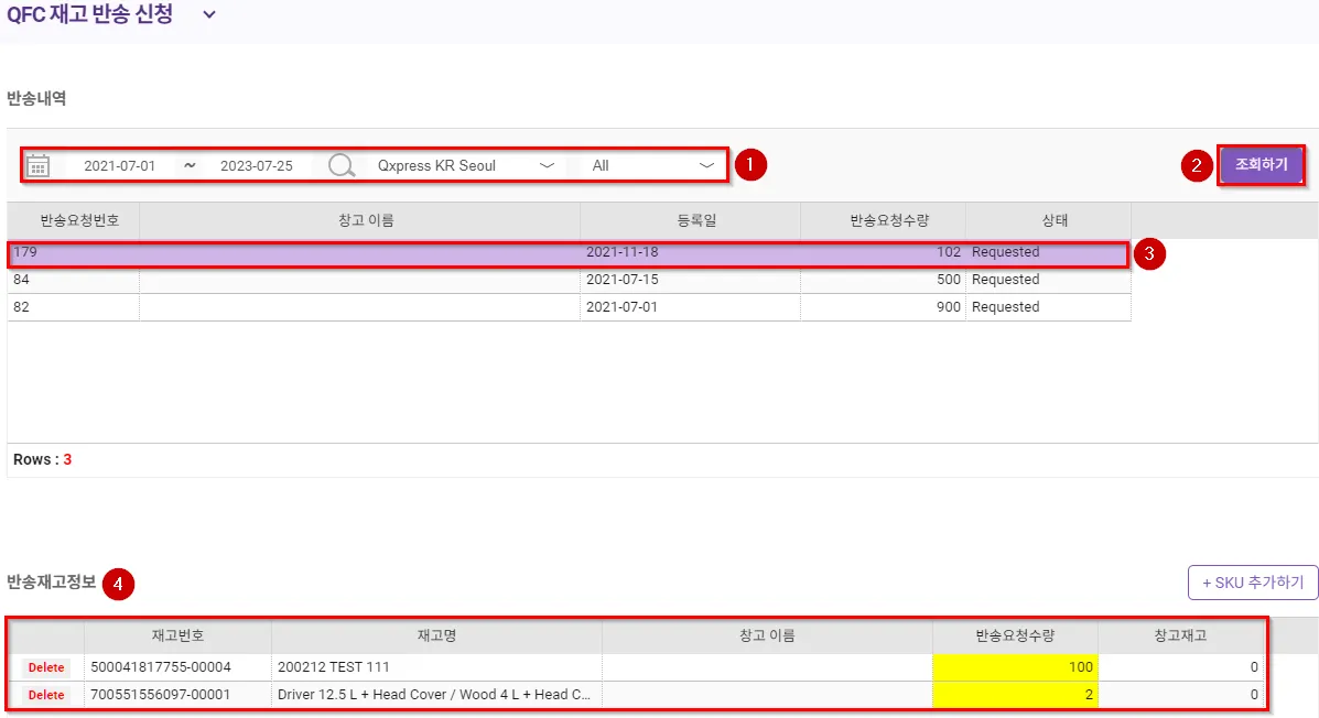 TXFC는(TracX Loigis Fulfillment Center) Qxpress에서 보유하고 있는 물류창고이며, 스마트십에서 ‘TXFC 재고 반송 신청’ 서비스를 통해 TXFC에 보관되어 있는 재고를 반송할 수 있습니다.